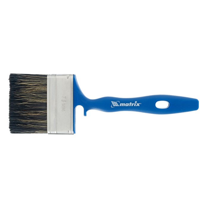 Флейцевая кисть Matrix Color Line «ВОДНЫЕ КРАСКИ» 83385 шириной 75 мм и толщиной 17 мм разработана специально для использования с составами на водной основе, в том числе деревообрабатывающими. Комбинированная щетина опти...