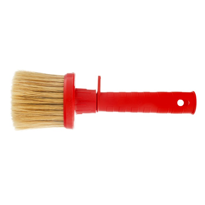 Маховая кисть Matrix KM 65 84006 с натуральной щетиной, пластиковыми корпусом и ручкой, используется для нанесения краски, побелки или грунтовки на поверхности большой площади. Круглый пучок кустовой набивки позволяет наносить лакокрасочный материал плотным слоем. В составе пучка преимущественно натуральная щетина, поэтому кисть устойчива к износу и не теряет упругости при длительном использовании. ПреимуществаРавномерное окрашивание — натуральная светлая щетина двойной выварки с расщепленными щетинками обладает повышенной способностью набирать и удерживать краску.Долговечность — пластиковый корпус не подвержен коррозии.Дополнительные возможности — съемная рукоятка позволяет установить телескопический удлинитель или стержень с резьбовым соединением, что дает возможность окрашивать высокие потолки и стены без использования стремянки или подмостей.Отверстие для подвешивания — кисть удобно сушить и хранить в вертикальном положении.