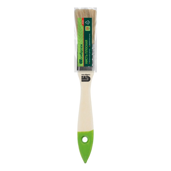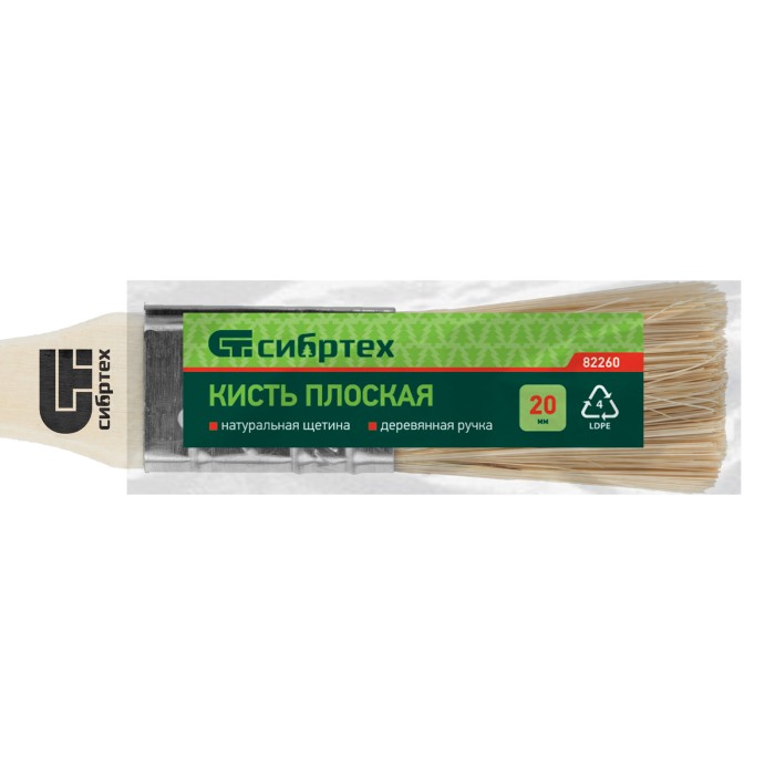 Кисть плоская 20 мм, натуральная щетина, деревянная ручка Сибртех