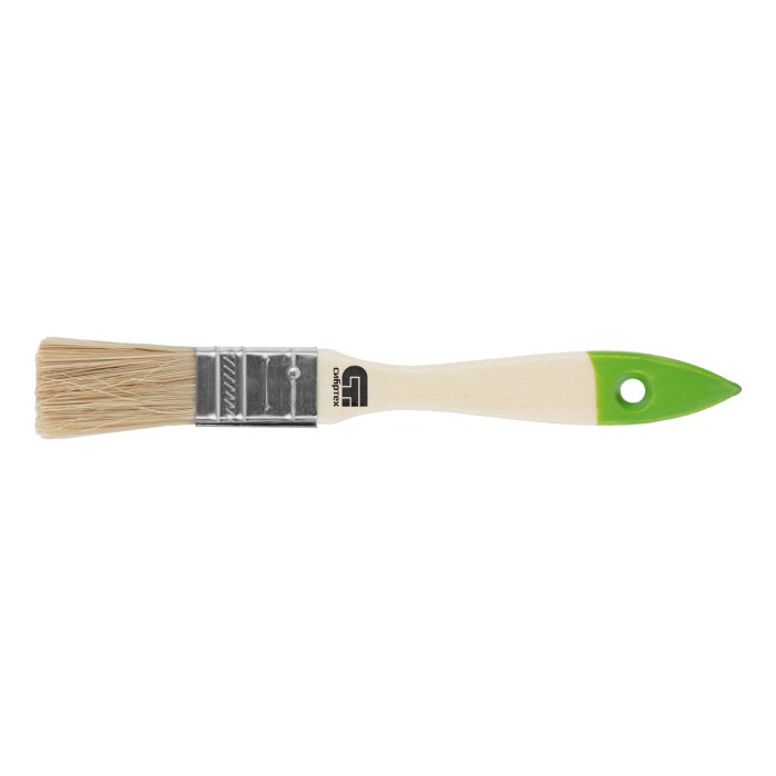 Плоская кисть Сибртех 82260 шириной 20 мм, с натуральной щетиной и деревянной ручкой, понадобится при окрашивании различных поверхностей. Ширина 20 мм делает инструмент оптимальным для окрашивания углов, мелких деталей, плинтусов и рам. Свиная натуральная щетина с добавлением искусственной подходит для большинства красок, в том числе масляных и на основе растворителей.ПреимуществаЭффективная работа — расщепленная на концах щетина повышает впитывающую способность кисти и улучшает отдачу краски.Высокое качество щетины — благодаря двойной выварке в ней не содержатся посторонние примеси и жир.Долговечность — металлический бандаж обработан антикоррозийным составом, а значит, кисть можно мыть под водой.Эргономичность — отшлифованная деревянная рукоятка удобно лежит в руке и имеет отверстие для подвесного хранения.Защита от рассыхания — рукоятка покрыта бесцветным лаком.