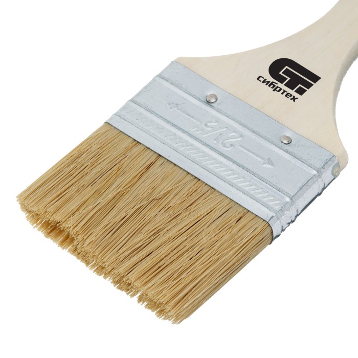 Кисть плоская 63 мм, натуральная щетина, деревянная ручка Сибртех
