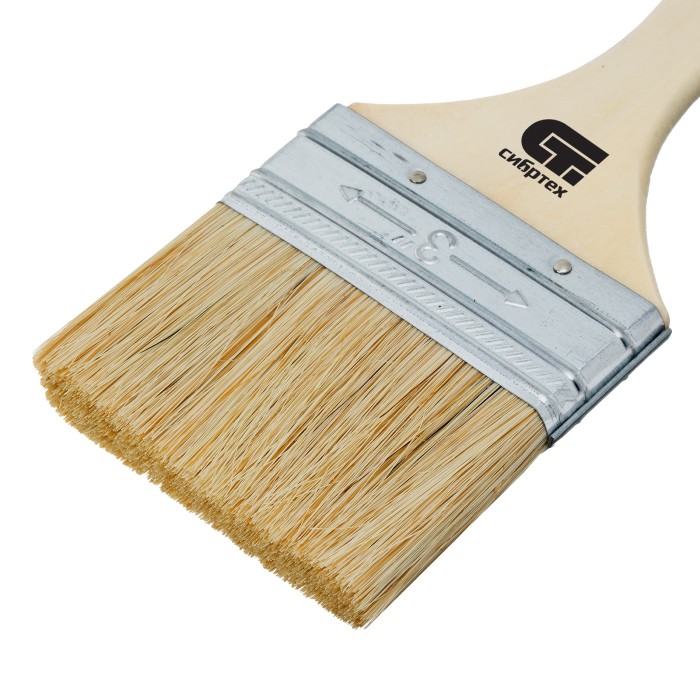 Кисть плоская 75 мм, натуральная щетина, деревянная ручка Сибртех