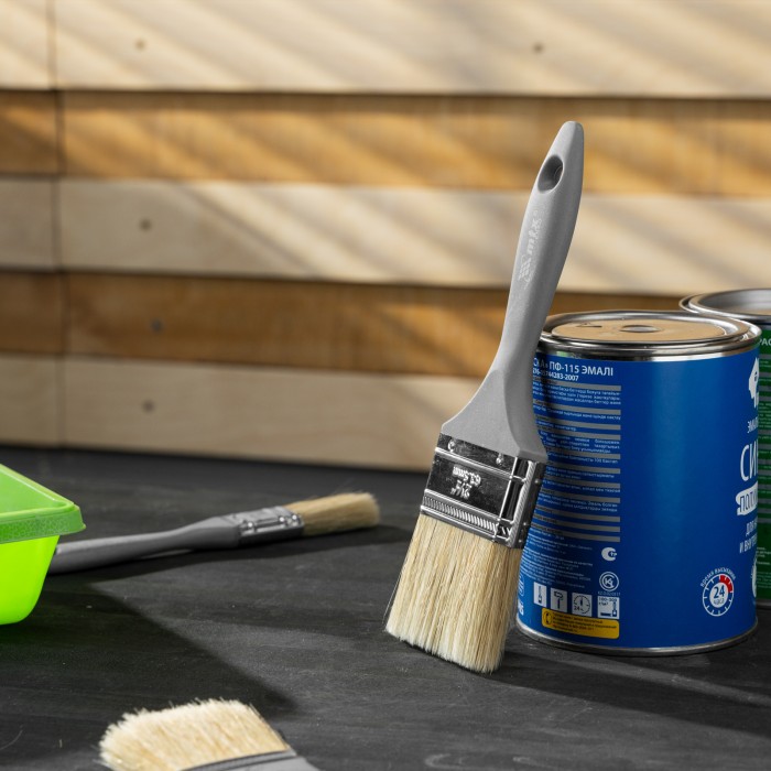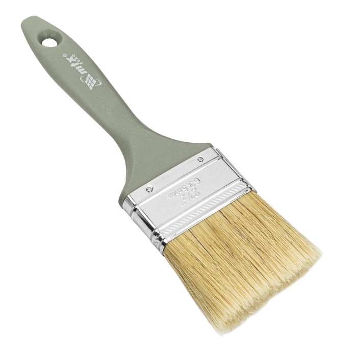 Плоская кисть MTX «Евро» 83064 шириной 2,5 дюйма, с натуральной щетиной и пластмассовой ручкой, используется для профессионального окрашивания поверхностей. Рекомендуется для нанесения агрессивных ЛКМ с содержанием раств...