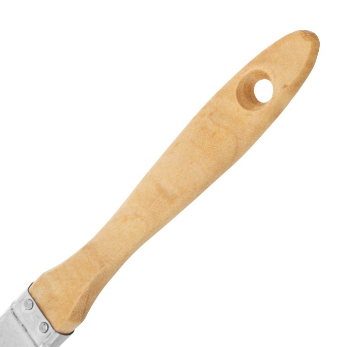 Плоская кисть MTX «Евро» 83050 шириной 3/4 дюйма, с натуральной щетиной и деревянной ручкой, используется для профессионального окрашивания поверхностей. Рекомендуется для нанесения агрессивных ЛКМ с содержанием растворителей. ПреимуществаШирина рабочей части 20 мм — кистью удобно окрашивать труднодоступные участки.Прочность и долговечность — бандаж надежно скрепляет щетину с рукояткой, поэтому кисть выдерживает многократное использование.Высокое качество окрашивания — дважды вываренная щетина не содержит посторонних примесей, а расщепленные кончики увеличивают ее способность впитывать и отдавать краску.Коррозионная стойкость — защитное покрытие предотвращает разрушение бандажа под воздействием влаги.Эргономичность — отшлифованная и покрытая лаком рукоятка удобно лежит в руке, а специальное отверстие позволяет подвешивать кисть на гвоздь или крючок.