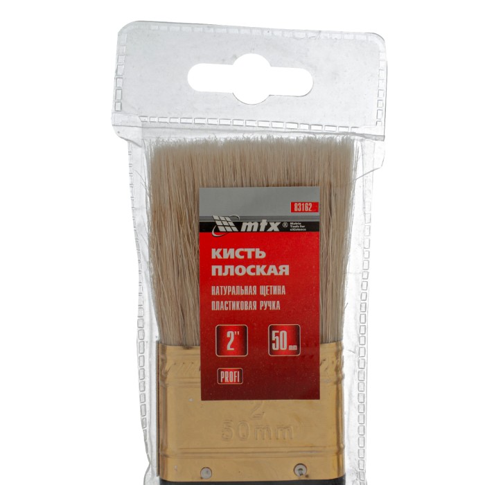 Кисть плоская "Профи" 2", натуральная щетина, пластмассовая ручка MTX