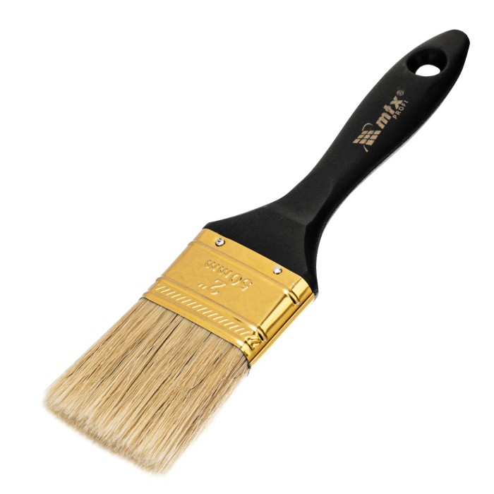 Плоская кисть «Профи» MTX 83162 шириной 2 дюйма, с натуральной щетиной и пластмассовой ручкой, рассчитана на профессиональное выполнение малярных работ. Натуральная щетина с увеличенной плотностью набивки подходит для нанесения различных типов ЛКМ, в том числе содержащих растворители. ПреимуществаШирина 50 мм — кисть оптимальна для окрашивания труб, оконных рам и других небольших поверхностей.Высокий ресурс — кисть премиум качества легко выдерживает интенсивное и многократное использование.Равномерное окрашивание — щетина двойной выварки не содержит посторонних примесей, а расщепленные кончики обеспечивают высокий показатель впитываемости и отдачи краски.Простой уход — кисть можно мыть, т.к. антикоррозийное покрытие защищает бандаж от разрушения.Комфортная работа — пластмассовая рукоятка удобно ложится в руку.Практичное хранение — в рукоятке имеется отверстие для подвешивания на крючок.