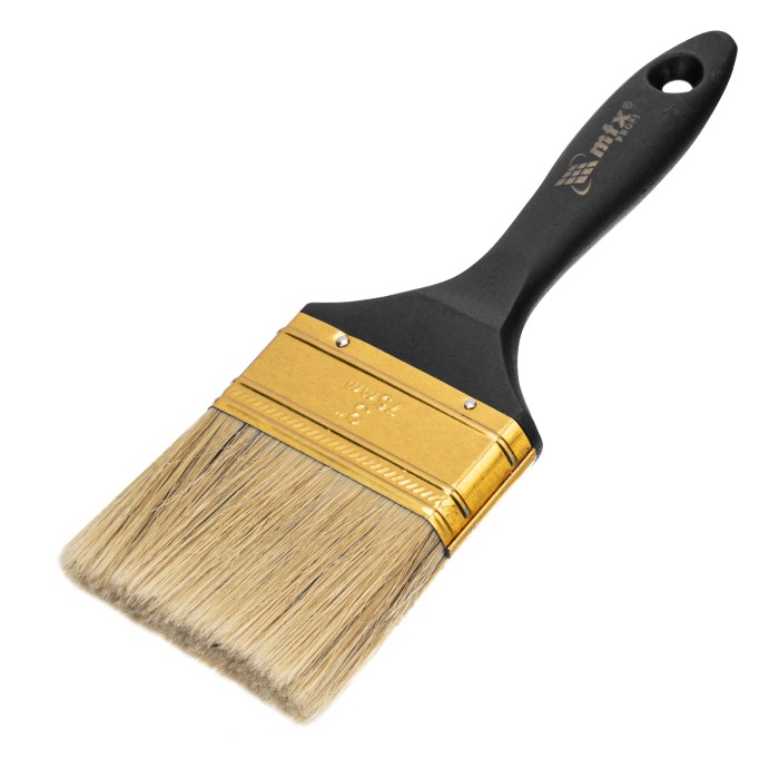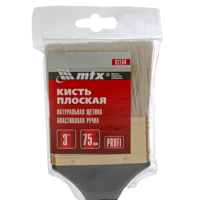 Плоская кисть «Профи» MTX 83164 шириной 3 дюйма, с натуральной щетиной и пластмассовой ручкой, рассчитана на профессиональное выполнение малярных работ. Натуральная щетина с увеличенной плотностью набивки подходит для на...