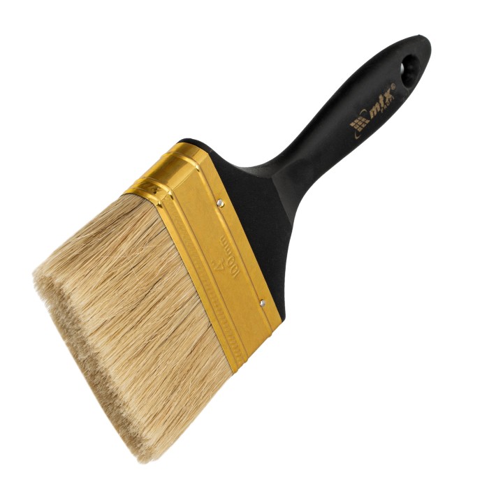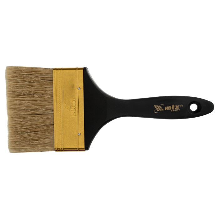 Плоская кисть «Профи» MTX 83165 шириной 4 дюйма, с натуральной щетиной и пластмассовой ручкой, рассчитана на профессиональное выполнение малярных работ. Натуральная щетина с увеличенной плотностью набивки подходит для на...