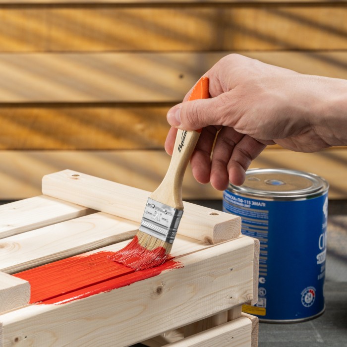 Плоская кисть Sparta Slimline 824255 шириной 1,5″ (38 мм), с натуральной щетиной и деревянной ручкой, используется для проведения несложных малярных работ. Натуральная щетина не разрушается под воздействием агрессивных веществ, поэтому кисть можно применять для работ с масляными красками, а также с составами на основе растворителей.ПреимуществаШирина 38 мм — кисть оптимальна для окрашивания узких поверхностей.Прочность — щетина надежно закреплена и не выпадает благодаря металлическому бандажу.Защита от разрушения — антикоррозийное покрытие защищает бандаж от ржавчины при контакте с водой, а значит, кисть можно мыть.Комфортная работа — деревянная рукоятка с утолщением в области хвата удобно ложится в руку.Практичное хранение — благодаря отверстию в рукоятке кисть можно повесить на гвоздь или крючок.
