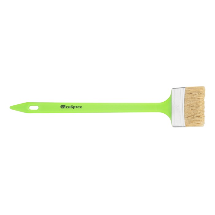 Радиаторная кисть Сибртех 83859 шириной 75 мм, с натуральной щетиной и пластиковой ручкой, позволяет окрашивать радиаторы, трубы, проволочные конструкции. Особенно удобна для покраски углов и стыков пола или потолка со стенами. Удлиненная ручка облегчает проведение малярных работ. Натуральная щетина с добавлением искусственного ворса устойчива к деформации и сохраняет упругость и краскообменные качества при использовании масляных красок и эмалей.ПреимуществаВысокое качество выполняемых работ — благодаря щетине с расщепленными кончиками кисть хорошо удерживает и равномерно распределяет краску.Устойчивость к нагрузкам — щетина не выпадает, т. к. она надежно закреплена клеем, пластиковыми клиньями и металлическим бандажом.Возможность замачивания — защитное покрытие предохраняет бандаж от образования ржавчины.Практичность — отверстие в рукоятке служит для подвешивания кисти и упрощает хранение.