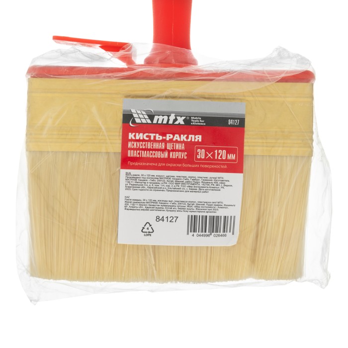 Кисть-ракля MTX 84127 толщиной 30 мм и шириной 120 мм, с искусственной щетиной, пластмассовыми корпусом и ручкой, используется для малярных работ на участках большой площади, поэтому удобна для обработки стен, потолков и...