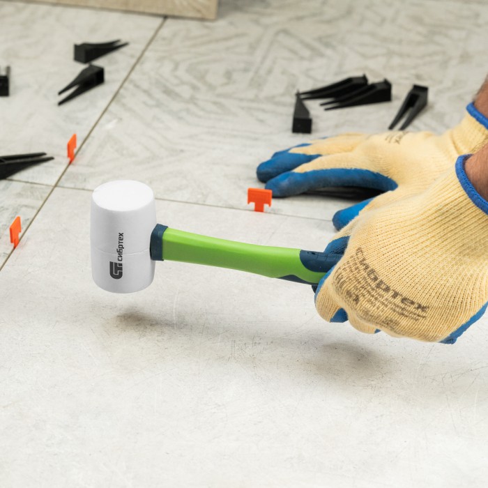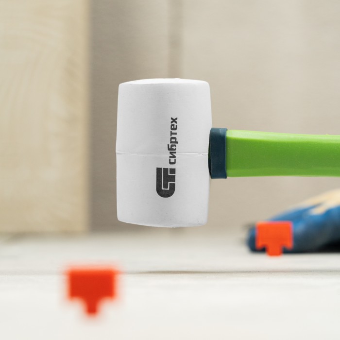 Киянка резиновая, 225 г, белая резина, фибергласовая рукоятка Сибртех