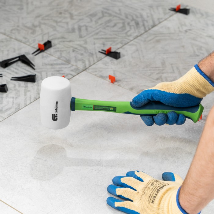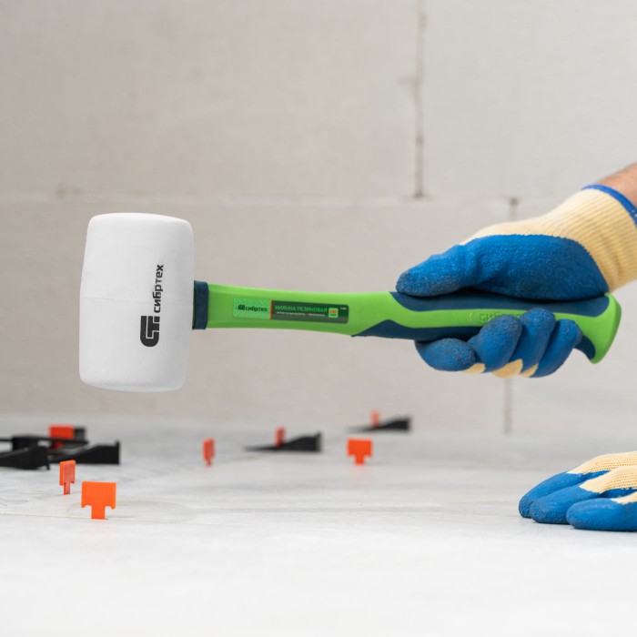 Киянка резиновая, 680 г, белая резина, фибергласовая рукоятка Сибртех