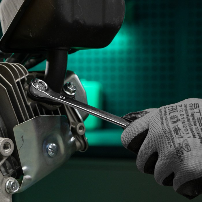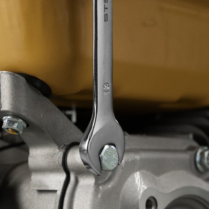Комбинированный ключ Stels 15209 из стали CrV, 13 мм, покрытый матовым хромом, используется для закручивания и откручивания гаечных и болтовых соединений. Накидная головка имеет 12-гранную внутреннюю поверхность, что обл...