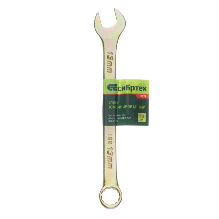 Ключ комбинированный, 13 мм, желтый цинк Сибртех