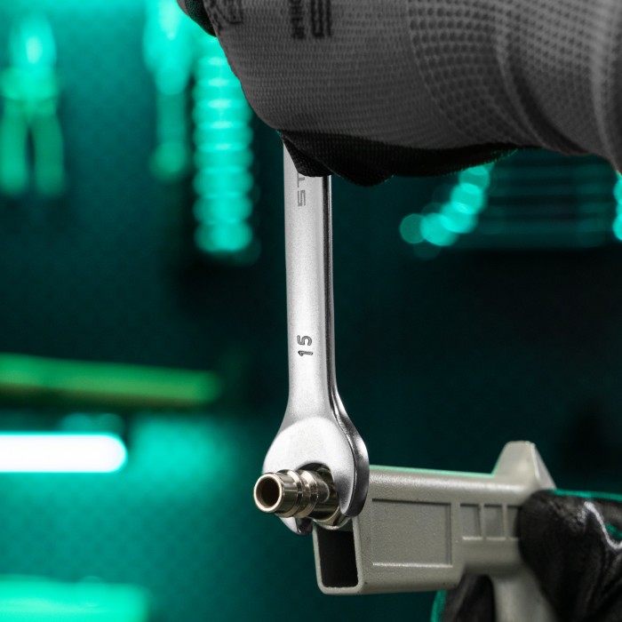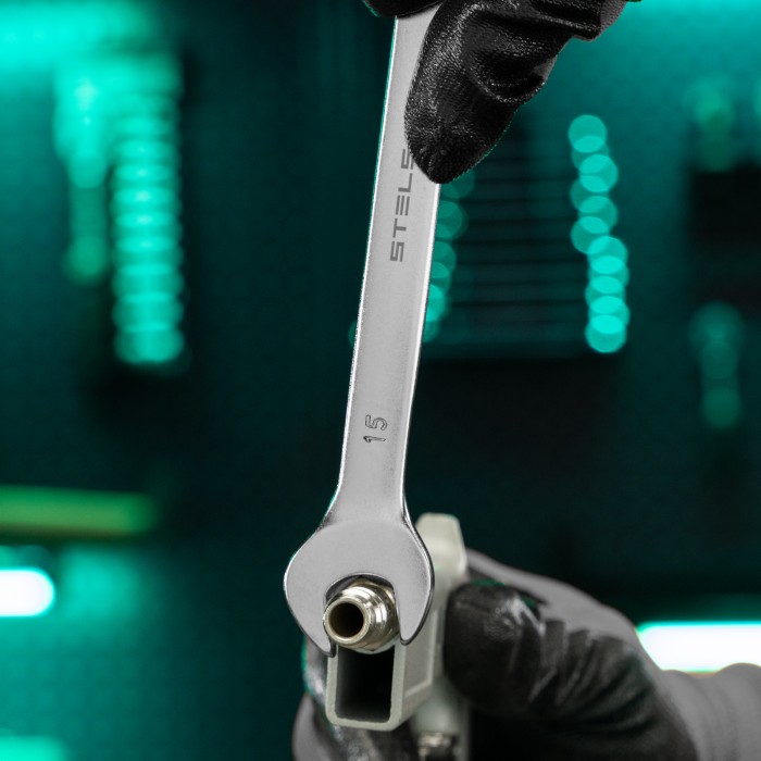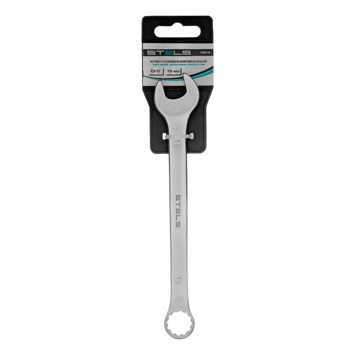Ключ комбинированный, 15 мм, CrV, матовый хром Stels