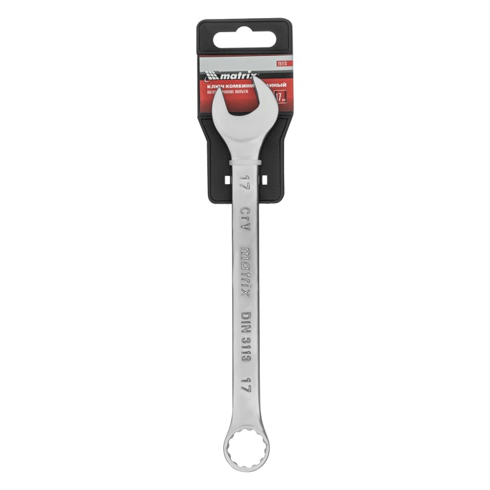 Ключ комбинированный, 17 мм, CrV, матовый хром Matrix