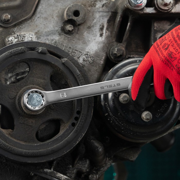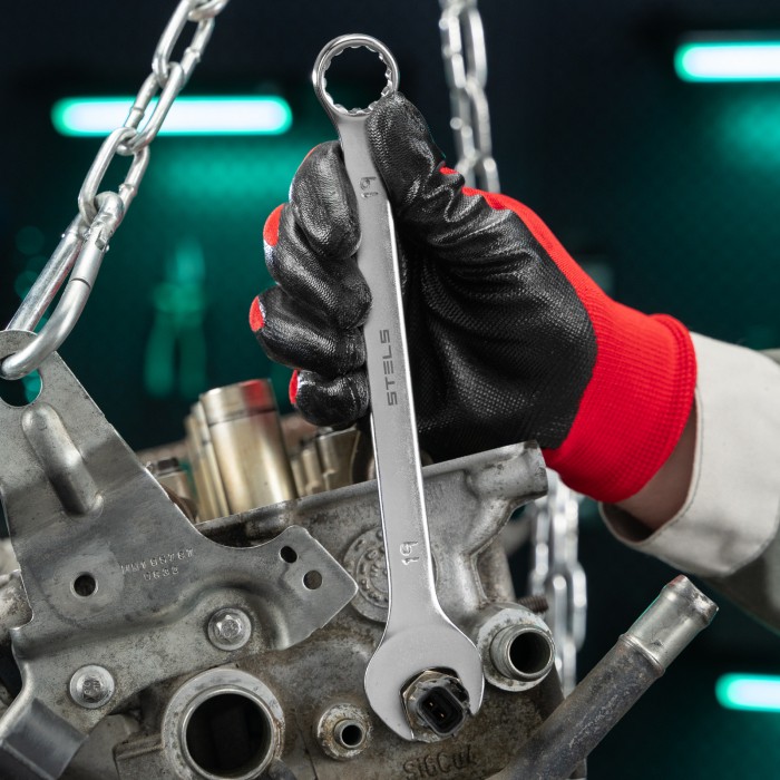Комбинированный ключ Stels 15214 из стали CrV, 19 мм, покрытый матовым хромом, используется для закручивания и откручивания гаечных и болтовых соединений. Накидная головка имеет 12-гранную внутреннюю поверхность, что обл...