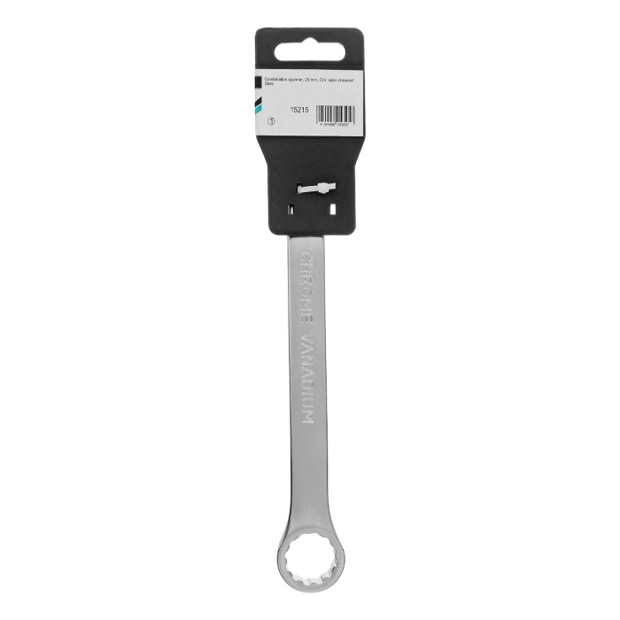 Комбинированный ключ Stels 15215 из стали CrV, 20 мм, покрытый матовым хромом, используется для закручивания и откручивания гаечных и болтовых соединений. Накидная головка имеет 12-гранную внутреннюю поверхность, что облегчает работу с крепежом и уменьшает опасность его повреждения. Ключ применяется в слесарных мастерских и автосервисах, а также будет полезен для решения бытовых задач.ПреимуществаВысокий показатель прочности — ключ изготовлен из стали хромованадиевой группы, рабочая часть закалена до твердости 45 HRC.Матовое хромоникелевое покрытие — инструмент защищен от образования коррозии.Комфорт при монтаже в труднодоступных местах — кольцевой зев наклонен под углом в 15 градусов к плоскости ключа.