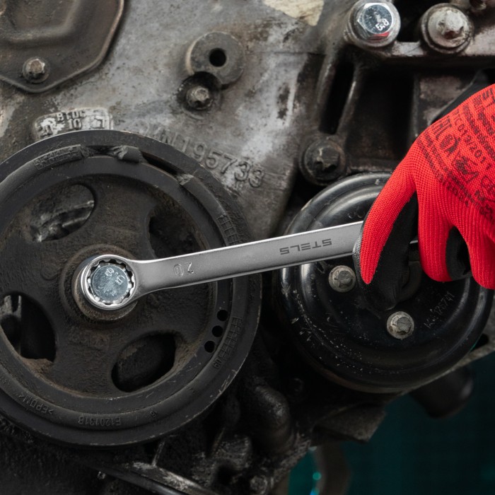 Комбинированный ключ Stels 15215 из стали CrV, 20 мм, покрытый матовым хромом, используется для закручивания и откручивания гаечных и болтовых соединений. Накидная головка имеет 12-гранную внутреннюю поверхность, что обл...