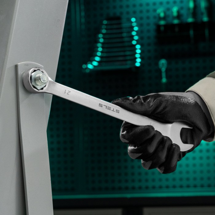 Комбинированный ключ Stels 15225 из стали CrV, 21 мм, покрытый матовым хромом, используется для закручивания и откручивания гаечных и болтовых соединений. Накидная головка имеет 12-гранную внутреннюю поверхность, что обл...