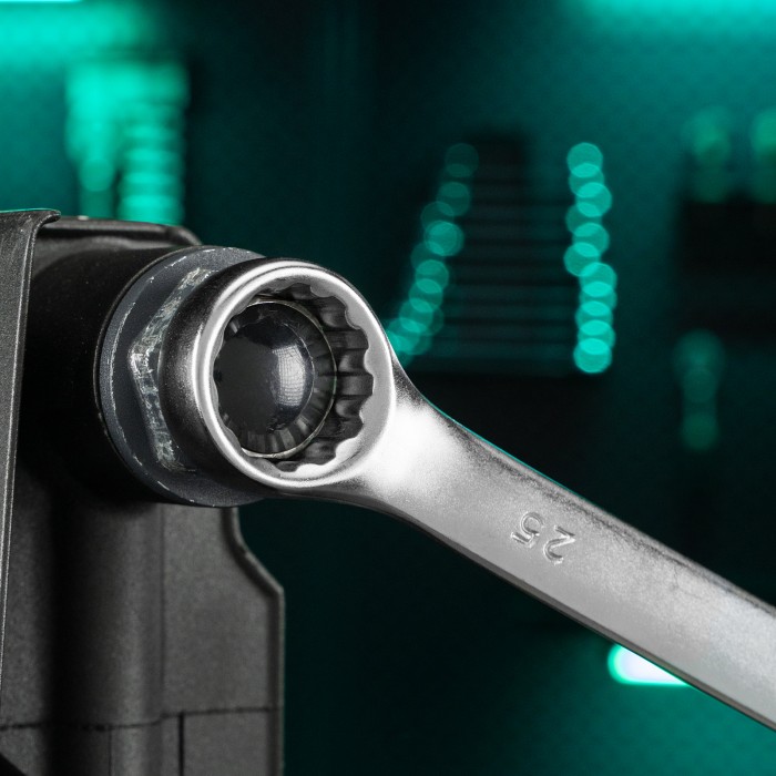 Комбинированный ключ Stels 15227 из стали CrV, 25 мм, покрытый матовым хромом, используется для закручивания и откручивания гаечных и болтовых соединений. Накидная головка имеет 12-гранную внутреннюю поверхность, что обл...