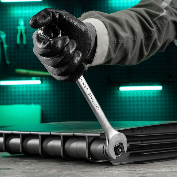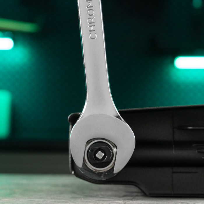 Комбинированный ключ Stels 15227 из стали CrV, 25 мм, покрытый матовым хромом, используется для закручивания и откручивания гаечных и болтовых соединений. Накидная головка имеет 12-гранную внутреннюю поверхность, что облегчает работу с крепежом и уменьшает опасность его повреждения. Ключ применяется в слесарных мастерских и автосервисах, а также будет полезен для решения бытовых задач.ПреимуществаВысокий показатель прочности — ключ изготовлен из стали хромованадиевой группы, рабочая часть закалена до твердости 45 HRC.Матовое хромоникелевое покрытие — инструмент защищен от образования коррозии.Комфорт при монтаже в труднодоступных местах — кольцевой зев наклонен под углом в 15 градусов к плоскости ключа.