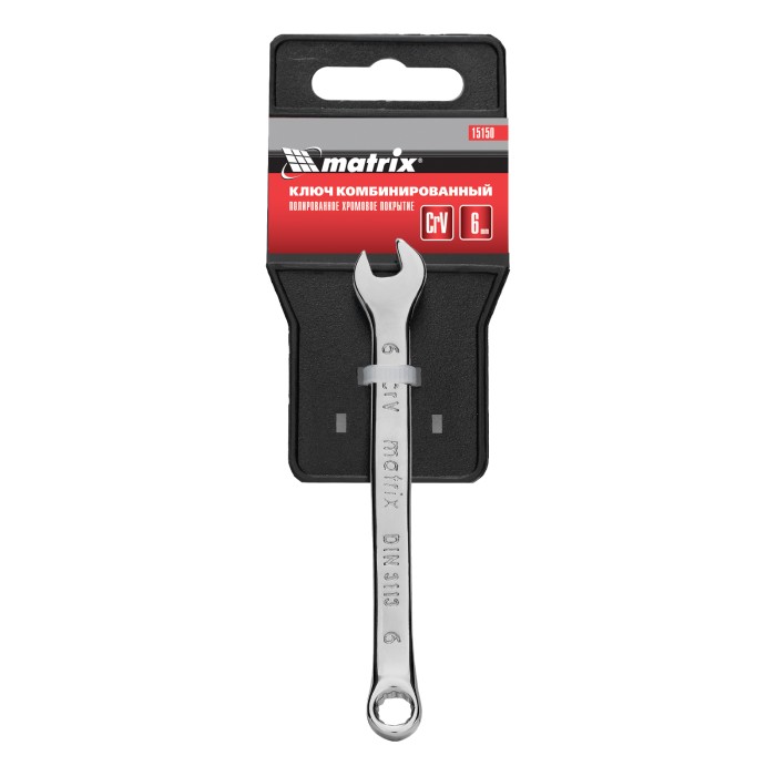 Комбинированный ключ Matrix 15150 размером 6 мм, из стали CrV, с покрытием «полированный хром», пригодится во время ремонтных работ дома или в гараже. С его помощью можно быстро монтировать и демонтировать крепежные элем...