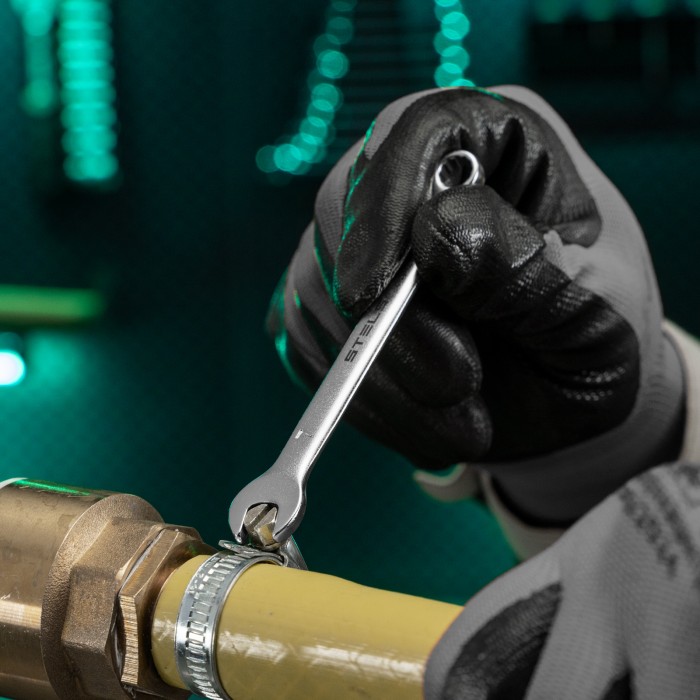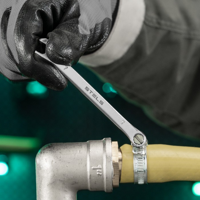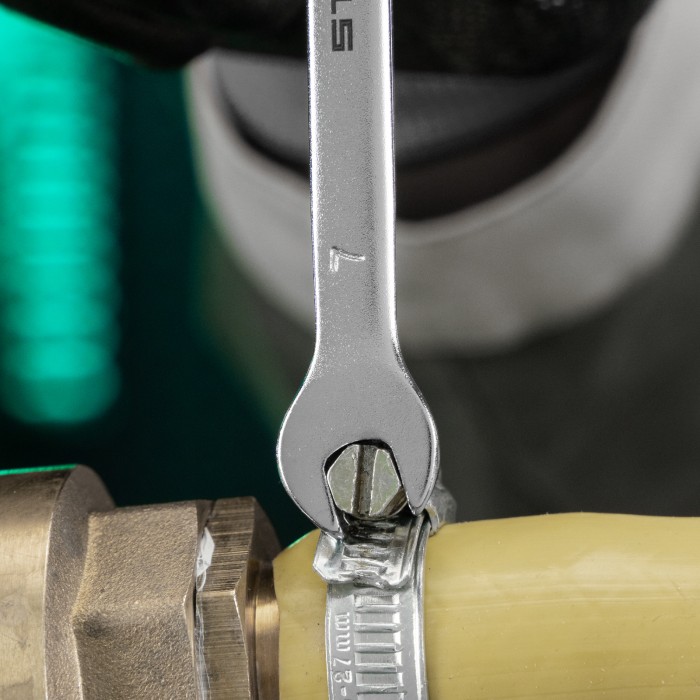 Комбинированный ключ Stels 15203 из стали CrV, 7 мм, покрытый матовым хромом, используется для закручивания и откручивания гаечных и болтовых соединений. Накидная головка имеет 12-гранную внутреннюю поверхность, что обле...