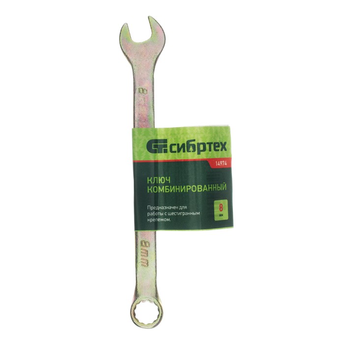 Ключ комбинированный, 8 мм, желтый цинк Сибртех
