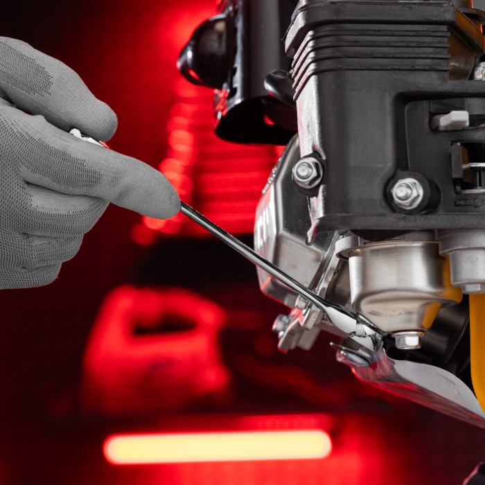 Комбинированный трещоточный ключ Matrix 14803 из стали CrV, с покрытием «зеркальный хром», размером 10 мм, позволяет быстро откручивать и закручивать болты и гайки. Рожковую часть удобно использовать там, где нет возможности полного охвата детали, а трещоточный механизм повышает удобство работы в труднодоступных местах.ПреимуществаПрочность — ключ из высококачественной стали 40CrV с храповым механизмом твердостью 58 HRC легко выдерживает интенсивные нагрузки.Коррозионная стойкость — зеркальное хромоникелевое покрытие защищает инструмент от воздействия влаги.Аккуратная работа — накидная часть с 12-гранным профилем полностью охватывает головку крепежа, что снижает риск деформации ее граней.