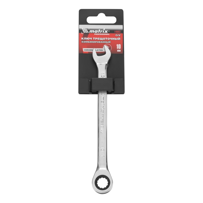 Ключ комбинированный трещоточный, 10 мм, CrV, зеркальный хром Matrix Professional