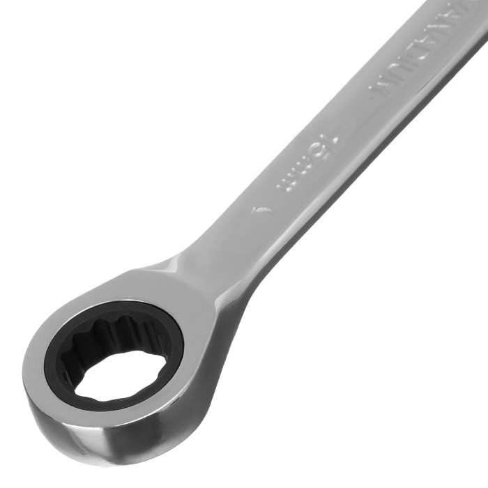 Комбинированный трещоточный ключ Matrix 14808 из стали CrV, с покрытием «зеркальный хром», размером 15 мм, позволяет быстро откручивать и закручивать болты и гайки. Рожковую часть удобно использовать там, где нет возможности полного охвата детали, а трещоточный механизм повышает удобство работы в труднодоступных местах.ПреимуществаПрочность — ключ из высококачественной стали 40CrV с храповым механизмом твердостью 58 HRC легко выдерживает интенсивные нагрузки.Коррозионная стойкость — зеркальное хромоникелевое покрытие защищает инструмент от воздействия влаги.Аккуратная работа — накидная часть с 12-гранным профилем полностью охватывает головку крепежа, что снижает риск деформации ее граней.