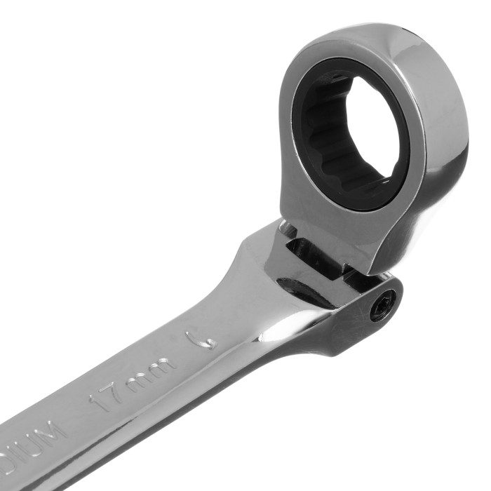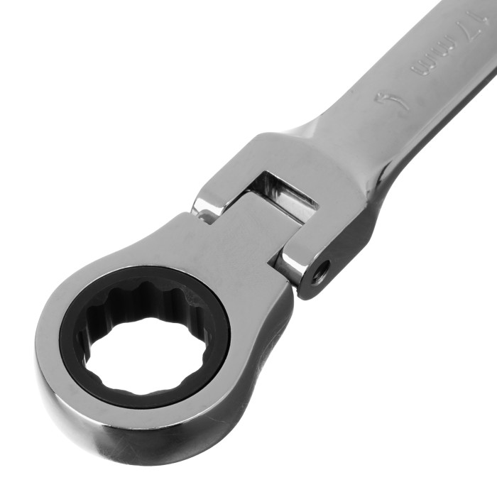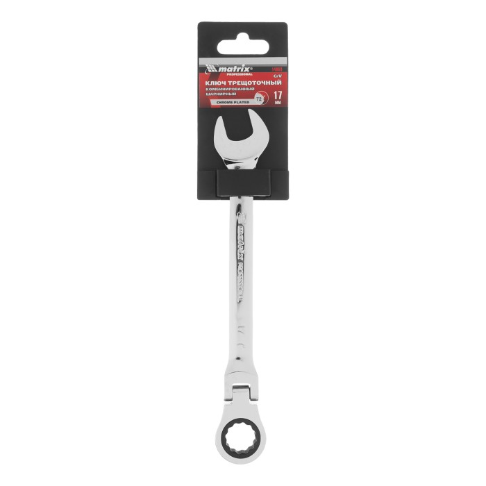 Ключ комбинированный трещоточный, 17 мм, CrV, шарнирный, зеркальный хром Matrix Professional