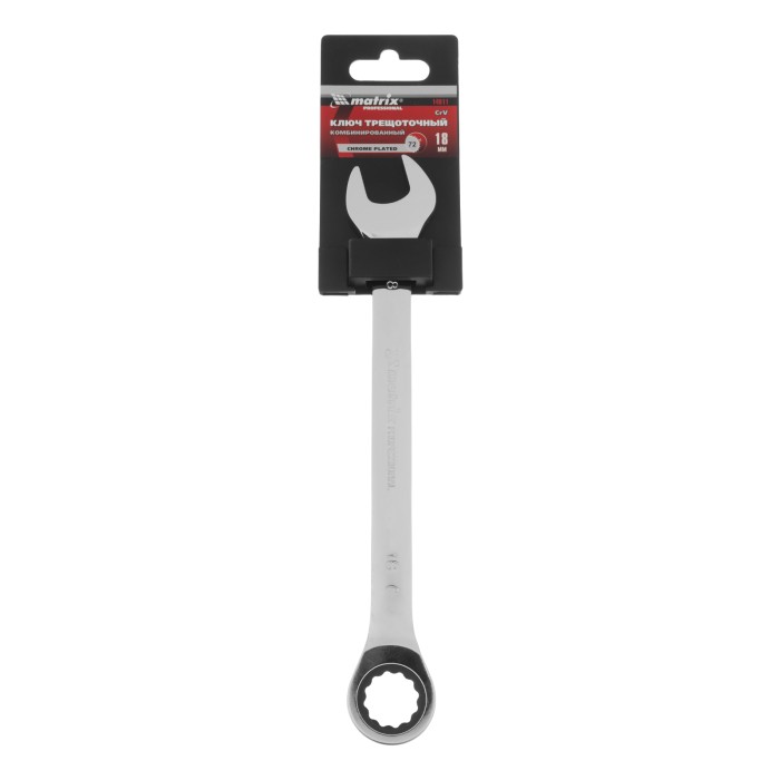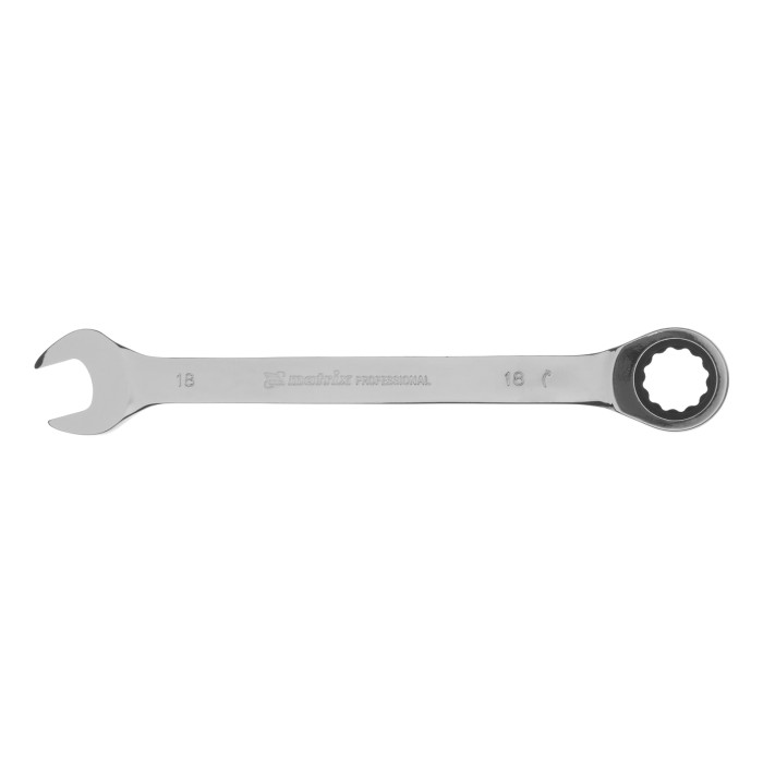Ключ комбинированный трещоточный, 18 мм, CrV, зеркальный хром Matrix Professional