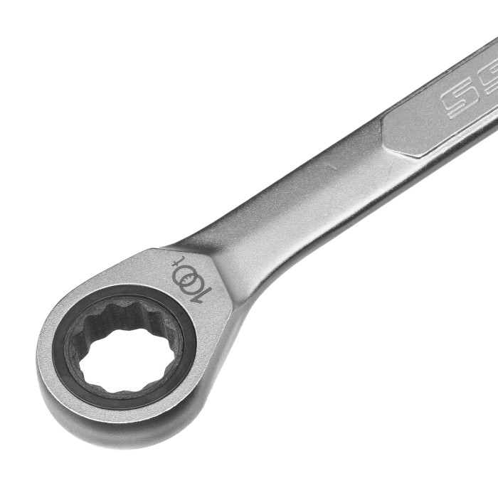 Комбинированный трещоточный ключ Gross 14856, 18 мм, используется при монтаже и демонтаже резьбовых соединений. Инструмент имеет как рожковую, так и накидную часть, что повышает его функциональность. У накидной части 12 внутренних граней, что увеличивает площадь соприкосновения с головкой крепежа и снижает риск ее деформации. Ключ применяется как в автосервисах, так и для самостоятельного ремонта автомобилей.ПреимуществаИнструмент изготовлен методом горячей штамповки из высококачественной стали хромованадиевой группы, что обеспечивает его устойчивость к износу и высоким нагрузкам.Усиленная рожковая часть позволяет справляться с крепежами, требующими значительных усилий.Благодаря матовому покрытию ключ не выскальзывает из рук, даже если они в масле.Храповый механизм оснащен 100 зубцами, что обеспечивает плавность хода инструмента (шаг трещотки всего 3,6 градусов) и делает его удобным для работы в ограниченном пространстве.Инструмент соответствует немецкому стандарту DIN, что подтверждает его высокое качество и надежность.Открытая упаковка TRY ME позволяет не только рассмотреть ключ перед приобретением, но и проверить его качество и функциональность.