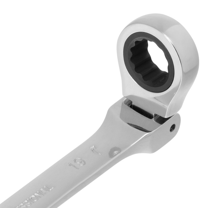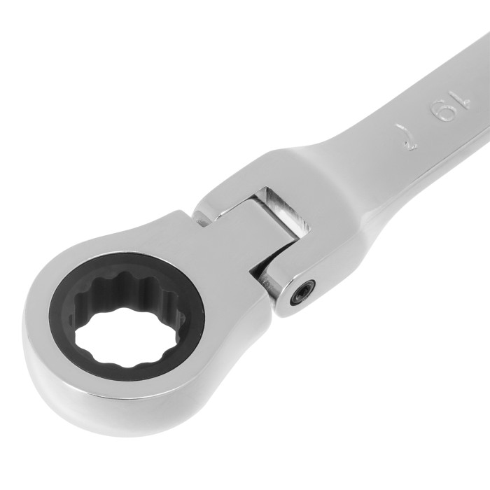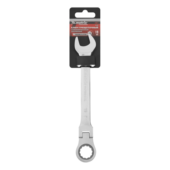 Ключ комбинированный трещоточный, 19 мм, CrV, шарнирный, зеркальный хром Matrix Professional