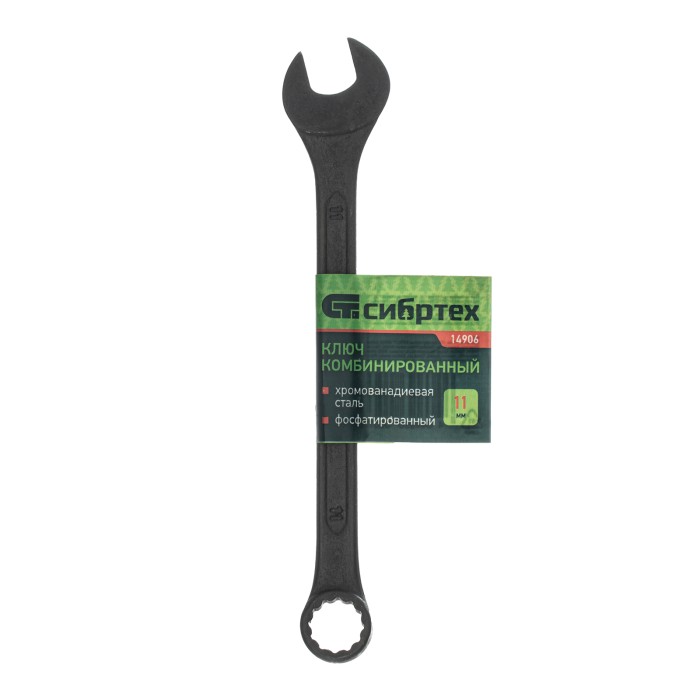 Ключ комбинированый, 11 мм, CrV, фосфатированный Сибртех