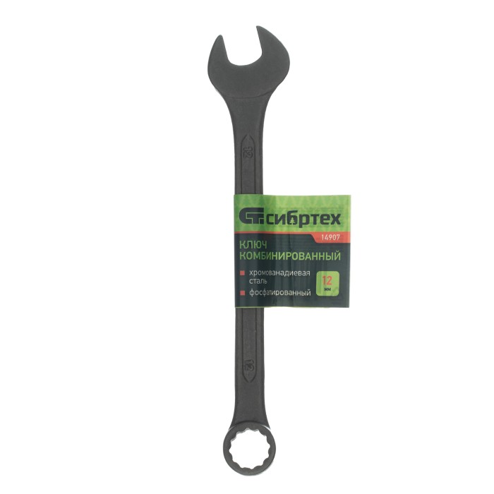 Ключ комбинированый, 12 мм, CrV, фосфатированный Сибртех
