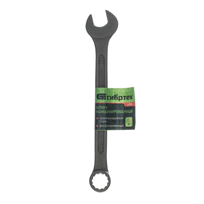 Ключ комбинированый, 13 мм, CrV, фосфатированный Сибртех