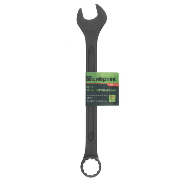 Ключ комбинированый, 17 мм, CrV, фосфатированный Сибртех