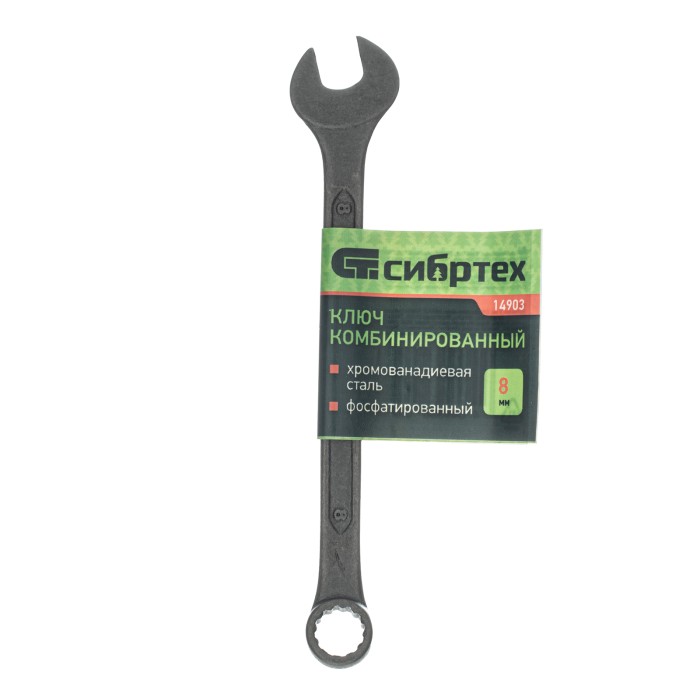 Ключ комбинированый, 8 мм, CrV, фосфатированный Сибртех