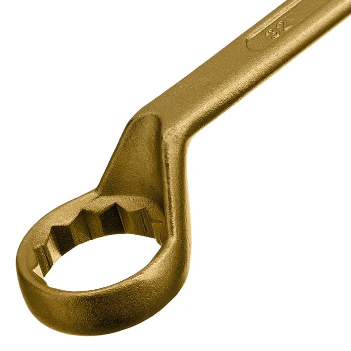 Накидной ключ Сибртех 14636 с покрытием из желтого цинка используется для монтажа и демонтажа резьбового крепежа с шестигранной головкой диаметром 27 и 32 мм. Пригодится для выполнения монтажных работ в гараже, на небольшом производстве и в быту. Кольцевой зев полностью захватывает шляпку крепежного элемента, поэтому ключом легко откручивать даже закисшие болты и гайки.ПреимуществаПрочность и долговечность — инструмент изготовлен из высококачественной углеродистой стали 45, твердость рабочих частей составляет 42 HRC, что соответствует требованиям ГОСТ (41-46 HRC).Устойчивость к воздействию влаги — желтое цинковое покрытие защищает от образования коррозии.Надежный захват крепежа — 12-гранный профиль каждого кольцевого зева имеет увеличенную площадь соприкосновения с головкой болта или гайки, что минимизирует риск повреждения ее граней.Продуманная конструкция — рабочие части смещены относительно плоскости рукоятки, что делает удобной работу в труднодоступных местах.