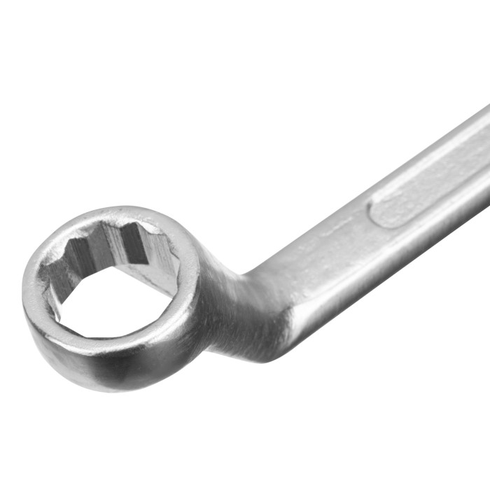Накидной коленчатый ключ Sparta 147535 с хромированной поверхностью используется для монтажа и демонтажа резьбового крепежа с шестигранной головкой диаметром 14 и 15 мм. Пригодится для выполнения монтажных работ в гараже, на небольшом производстве и в быту. Кольцевой зев полностью захватывает шляпку крепежного элемента, поэтому ключом легко откручивать даже закисшие болты и гайки.ПреимуществаПрочность и долговечность — инструмент изготовлен из высококачественной углеродистой стали 45, твердость рабочих частей составляет 42 HRC, что соответствует требованиям ГОСТ (41-46 HRC).Устойчивость к воздействию влаги — хромовое покрытие защищает от образования коррозии.Надежный захват крепежа — 12-гранный профиль каждого кольцевого зева имеет увеличенную площадь соприкосновения с головкой болта или гайки, что минимизирует риск повреждения ее граней.Продуманная конструкция — рабочие части смещены относительно плоскости рукоятки, что делает удобной работу в труднодоступных местах.