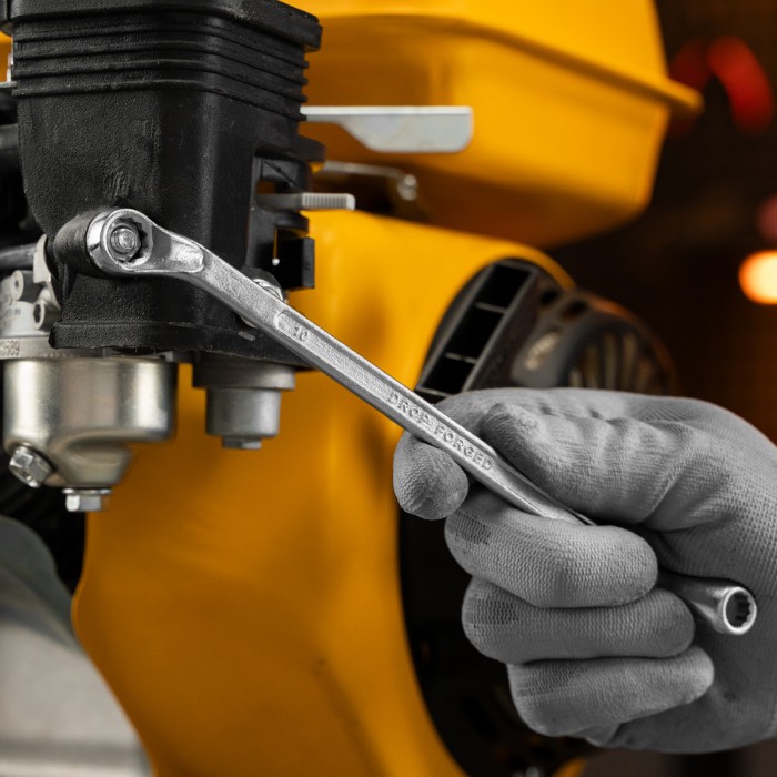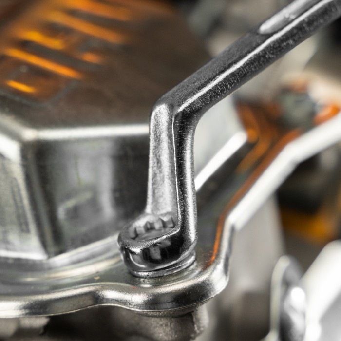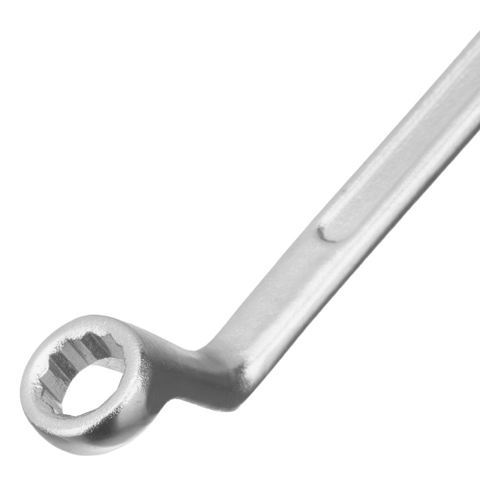 Накидной коленчатый ключ Sparta 147365 с хромированной поверхностью используется для монтажа и демонтажа резьбового крепежа с шестигранной головкой диаметром 8 и 10 мм. Пригодится для выполнения монтажных работ в гараже, на небольшом производстве и в быту. Кольцевой зев полностью захватывает шляпку крепежного элемента, поэтому ключом легко откручивать даже закисшие болты и гайки.ПреимуществаПрочность и долговечность — инструмент изготовлен из высококачественной углеродистой стали 45, твердость рабочих частей составляет 42 HRC, что соответствует требованиям ГОСТ (41-46 HRC).Устойчивость к воздействию влаги — хромовое покрытие защищает от образования коррозии.Надежный захват крепежа — 12-гранный профиль каждого кольцевого зева имеет увеличенную площадь соприкосновения с головкой болта или гайки, что минимизирует риск повреждения ее граней.Продуманная конструкция — рабочие части смещены относительно плоскости рукоятки, что делает удобной работу в труднодоступных местах.