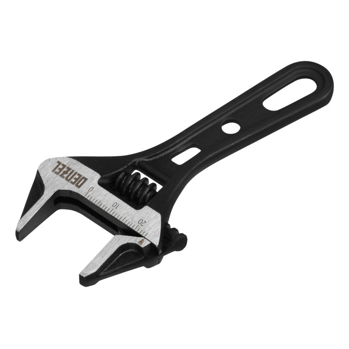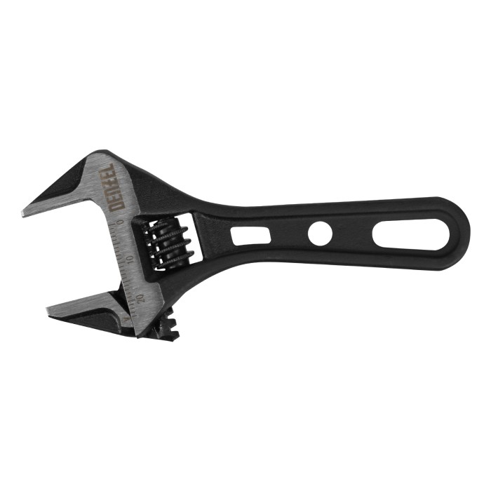Ключ разводной кованый Denzel 15751 длиной 115 мм, из стали CrV, с укороченной рукояткой и увеличенным раскрытием губок, используется для монтажа и демонтажа крепежных элементов диаметром до 24 мм. Благодаря тонким губка...