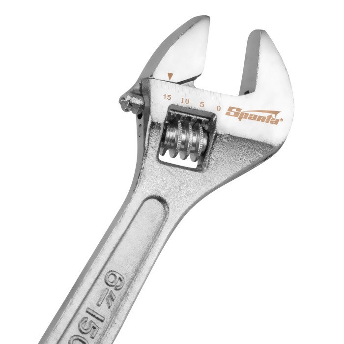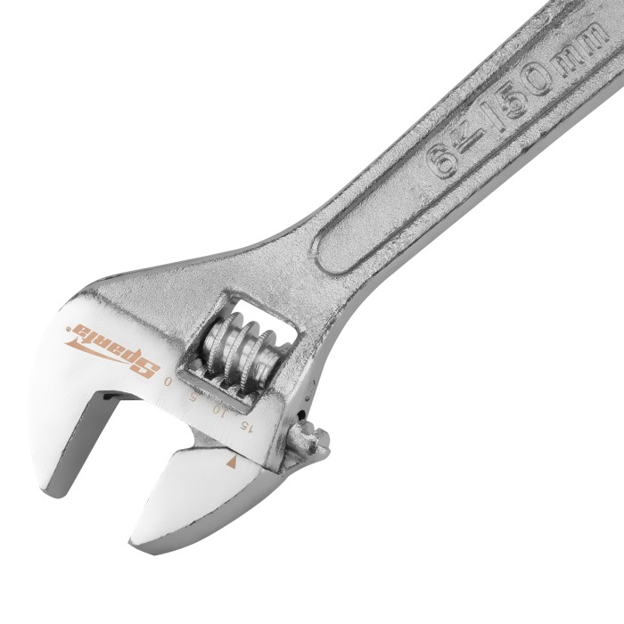 Хромированный разводной ключ Sparta 155205 длиной 150 мм — инструмент для выполнения мелких ремонтных работ. Регулировка размера зева позволяет работать с различными крепежами, в том числе нестандартных размеров. Ключ пригодится слесарям, сантехникам, автомеханикам и начинающим мастерам.ПреимуществаДолгий срок службы — ключ выполнен из инструментальной углеродистой стали 45 и прошел селективную закалку.Антикоррозийная защита — хромовое покрытие предохраняет червячный винтовой механизм от воздействия влаги.Точный захват деталей — на ключ нанесена градуировка, а на подвижную губку — точечная риска.Малый вес 0,134 кг — длительная работа не вызывает дискомфорт.