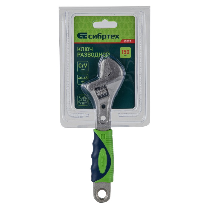 Ключ разводной, 150мм, переставная губка, 2-х комп. рукоятка Сибртех