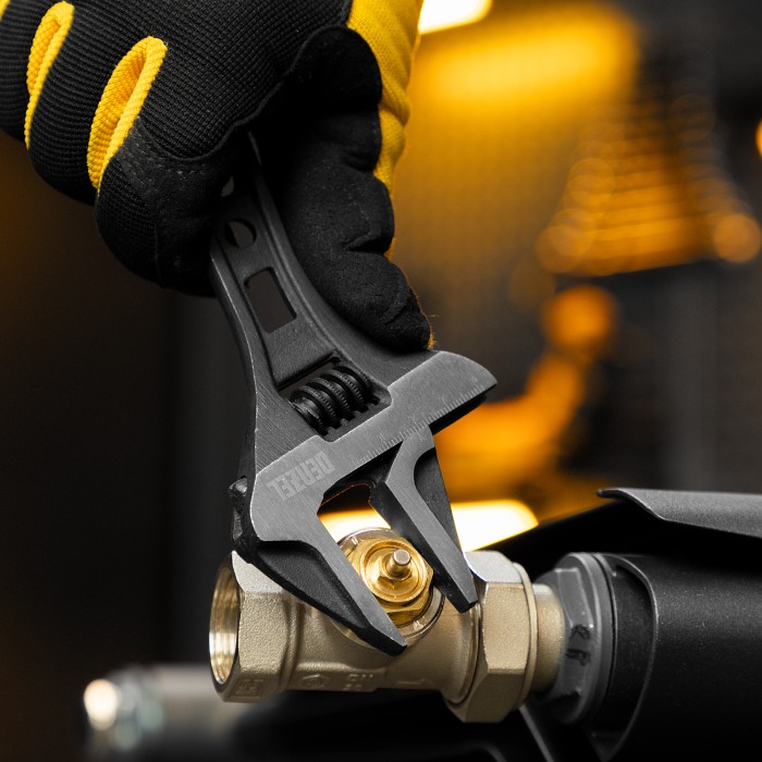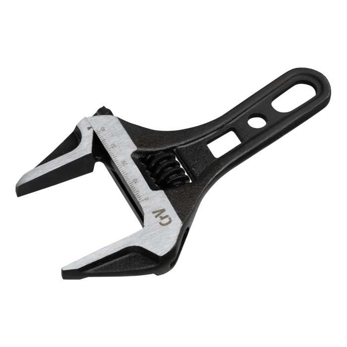 Ключ разводной кованый Denzel 15753 длиной 155 мм, из стали CrV, с укороченной рукояткой и увеличенным раскрытием губок, используется для монтажа и демонтажа крепежных элементов диаметром до 41 мм. Благодаря тонким губка...