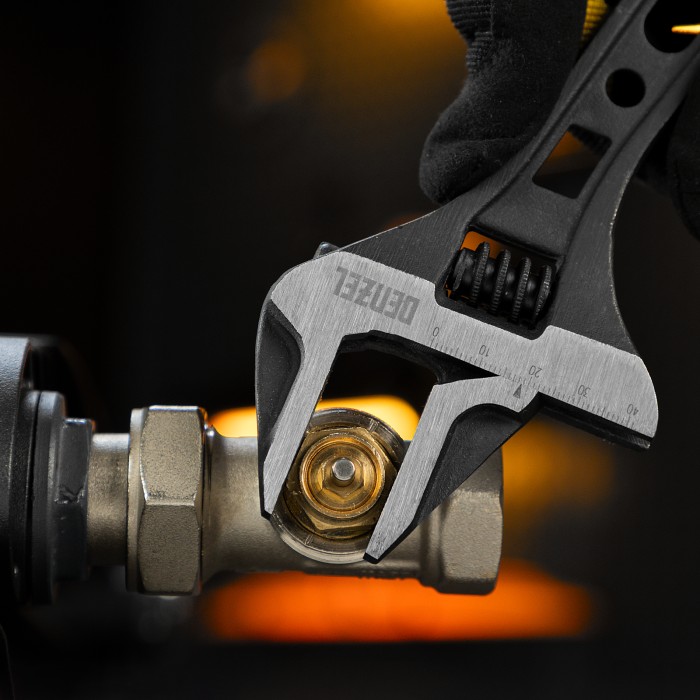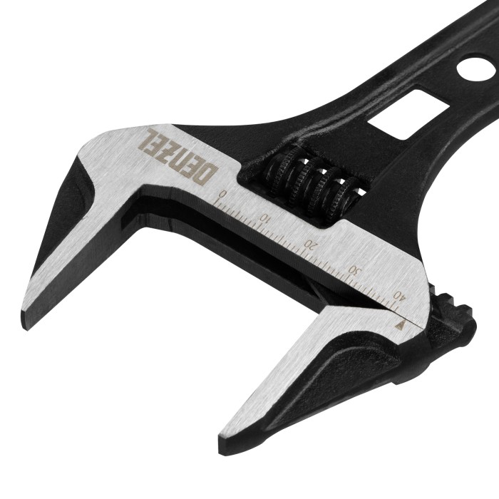 Ключ разводной кованый Denzel 15753 длиной 155 мм, из стали CrV, с укороченной рукояткой и увеличенным раскрытием губок, используется для монтажа и демонтажа крепежных элементов диаметром до 41 мм. Благодаря тонким губкам и укороченной рукоятке удобен для работы в труднодоступных местах. Имеет широкую область применения: сантехнические работы, мелкий бытовой ремонт, полупрофессиональная сфера и т. д.ПреимуществаПрочность и долговечность — ключ изготовлен из закаленной хромованадиевой стали методом ковки.Увеличенный ресурс — кованая конструкция усилена дополнительными ребрами жесткости на рукоятке. Защита от разрушения — фосфатированная поверхность инструмента не подвержена коррозии.Удобная эксплуатация — метрическая линейка на ключе помогает выставить нужный размах зева.Возможность подвесного хранения — в рукоятке предусмотрено специальное отверстие.